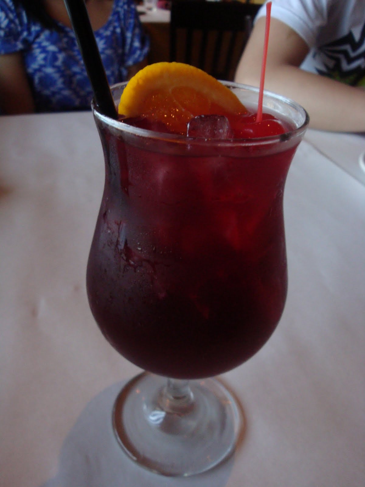 My C&O Cucina's Sangria made of Chianti wine, brandy, fruit juices, Sprite, and garnished with an orange and cherry :
