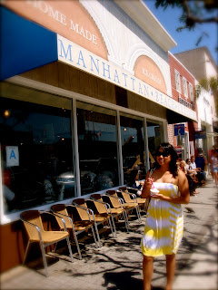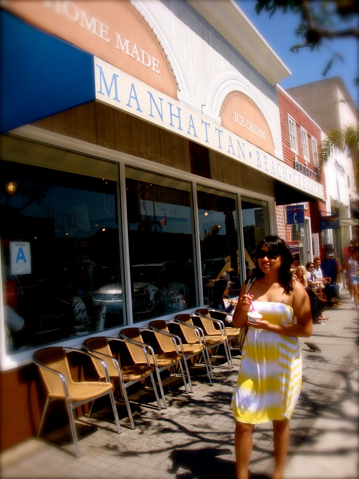 After walking along Manhattan Beach, we went to get some ice cream from Manhattan Beach Creamery. I love this place because they had a lot of homemade ice cream, desserts, and candies. You could spend like an hour looking at all the delights they have! I sampled some of their original ice creams and thought that the Red Velvet Ice Cream was a unique one - it had bits of red velvet cake in it... They should make an ice cream sandwich of that flavor! I decided to get the Coconut Ice Cream. I missed that flavor and I was feeling tropical that day!