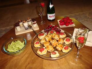On the Sunday of True Blood's season 3 premiere, there was a viewing party at Reggie's place. It was an clumsy experience she and I had when we were opening a bottle of Ballatore Sparkling Wine with the wrong corkscrew opener! Anyways she made lovely appetizers and it was a memorable night indeed!