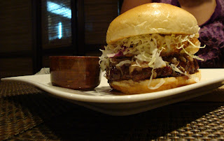 Since it was my first time there, I asked my friends what I should get. They all said to try the Ronin Burger because it's very juicy. That description grossed me out because juicy to me = fatty goodness, but they didn't mean it as in fat they meant as in flavor. So I ordered it and ate the fastest out of everyone...It was wonderful! It comes in a sweet bread bun, topped with caramelized onions, Japanese cole slaw, miso goma dressing, fried egg, katsu BBQ, and yuzu citrus aioli on the side.